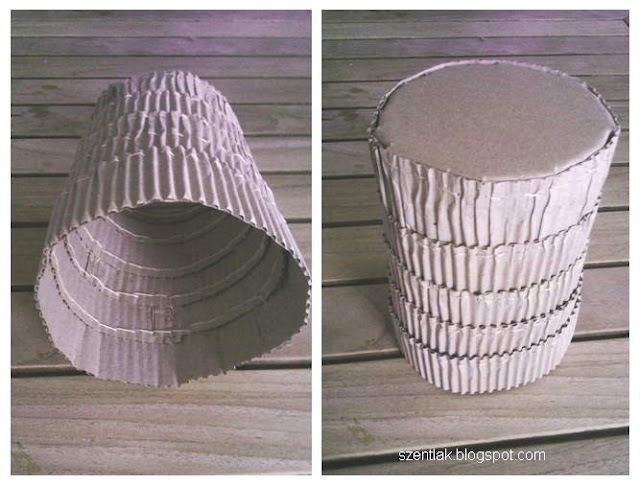 Ha a költözésnél leterített hullámpapír tekercsből marad egy kevés, akár lámpa-búrát is készíthetünk belőle. Szigorúan ragasztóanyag nélkül, kizárólag varrással. Kör alakot és csíkokat kell kivágnunk, majd összevarrnunk. Az egyes rétegek egyre hosszabb papírcsíkot igényelnek, addig folytassuk a papírgyűrűk sorát, amíg el nem érjük a lámpatest kívánt magasságát. A felső részen egy kis nyílást kell vágni, ahol a vezeték átfér.